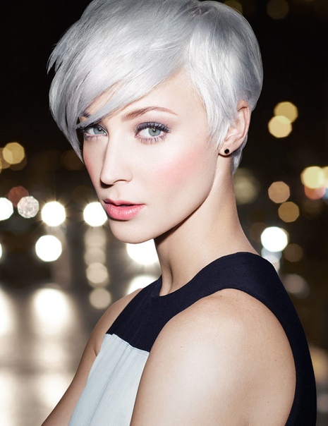 Седые волосы по структуре очень жесткие, они часто торчат, в связи с этим идеальной стрижкой для женщины с седыми волосами станет пикси.