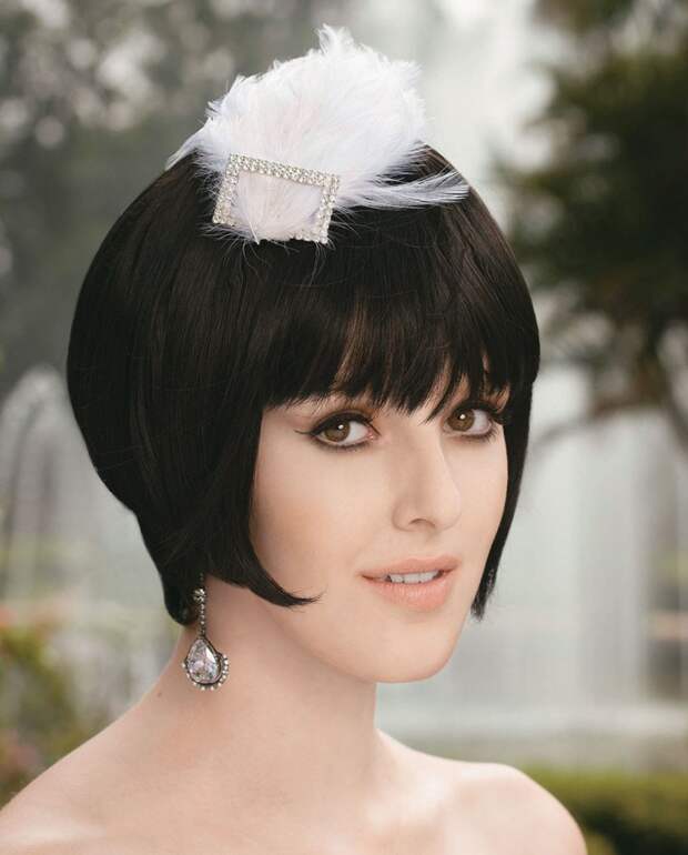 Волосы зачесаны внутрь, концы аккуратно заправлены, а челка зачесана набок.