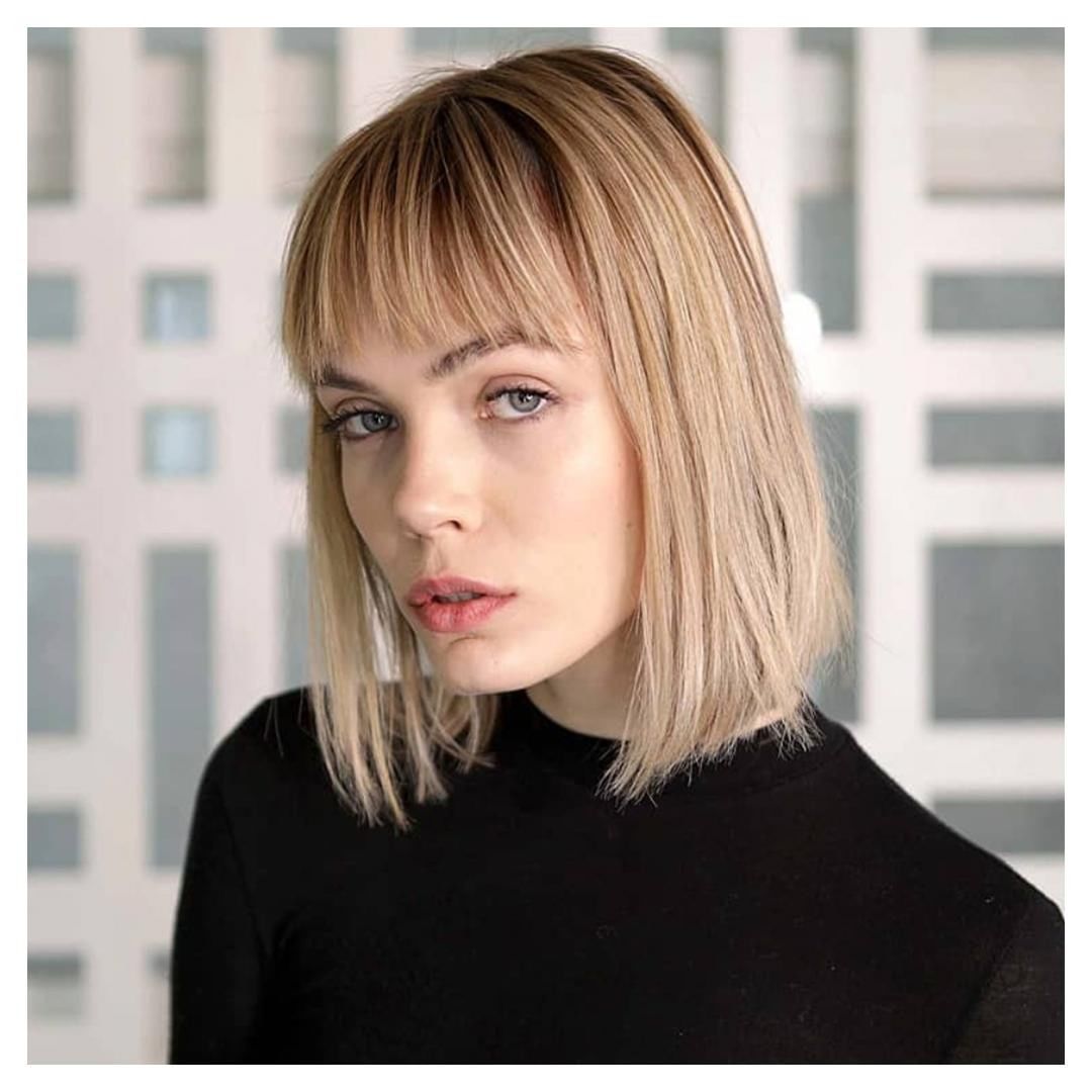Косая челка может стать отличным дополнением к этой прическе. Укладка делается очень просто: после мытья головы необходимо создать объем с помощью фена и круглой щетки.