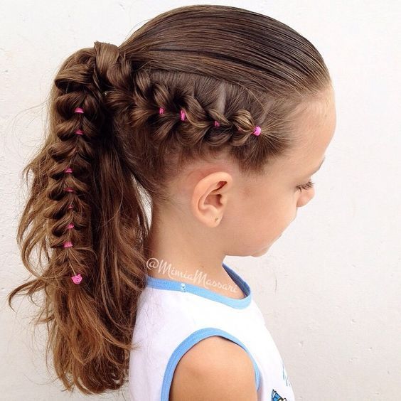ΠΠ΅Π»ΠΈΠΊΠΎΠ»Π΅ΠΏΠ½Π°Ρ ΠΏΡΠΈΡΠ΅ΡΠΊΠ° Π΄Π»Ρ ΠΌΠ°Π»Π΅Π½ΡΠΊΠΈΡ Π΄Π΅Π²ΠΎΡΠ΅ΠΊ Ρ Π΄Π»ΠΈΠ½Π½ΡΠΌΠΈ Π²ΠΎΠ»ΠΎΡΠ°ΠΌΠΈ. ΠΡΡΠ΅Π· Π΄Π»ΠΈΠ½ΠΎΠΉ Π΄ΠΎ ΠΏΠ»Π΅Ρ ΡΠΎΡΡΠΎΠΈΡ ΠΈΠ· ΡΠ»ΠΎΠ΅Π² ΡΠ²Π΅ΡΡ Ρ ΠΈ ΠΏΠΎ Π±ΠΎΠΊΠ°ΠΌ, ΡΠΎΠ·Π΄Π°Π²Π°Ρ ΠΎΠ±ΡΠ΅ΠΌ Π² ΠΎΠ±Π»Π°ΡΡΠΈ ΠΌΠ°ΠΊΡΡΠΊΠΈ.