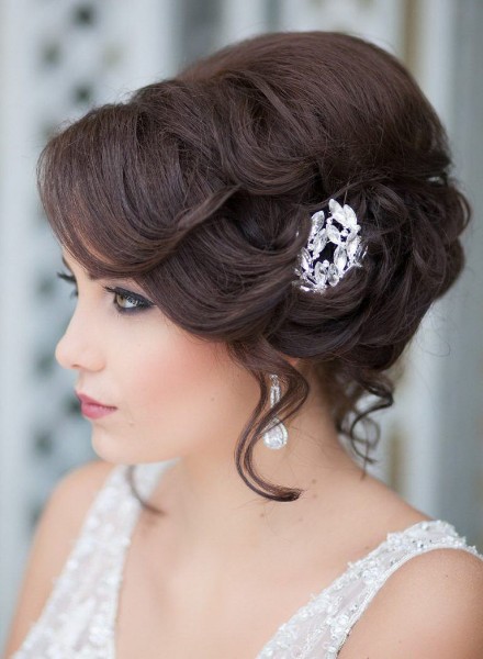 Локоны бессистемно подкалывают невидимками или зачесывают на одну сторону, формируя изящный завиток.
