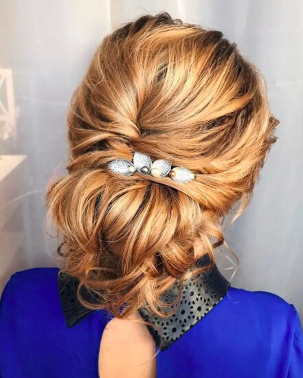 - Скрутите низкий небрежный пучок на затылке, закрепите невидимками.