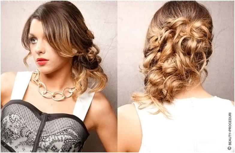 На пике популярности находятся в последнее время прически, сделанные на одну сторону. Этот нежный и очень женственный образ можно часто увидеть на различных праздничных мероприятиях. Подходит он утонченным и романтичным натурам, а смотрится аккуратно и естественно. Для такой укладки важны кудри. Если природа ими не наградила, можно создать их при помощи плойки или бигуди. А собрать длинные волосы и уложить на бок, оформив в праздничную прическу, не займет много времени.