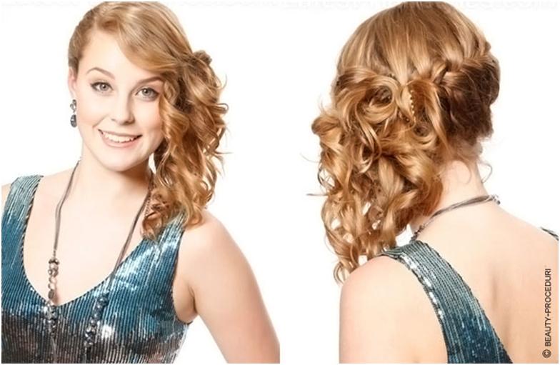 Для тех, кому вышеописанный вариант покажется сложным, можно просто перекинуть кудри на любую сторону, закрепить их и зафиксировать лаком. А со стороны открытой части головы, сбоку заплести косичку. Чем не вариант женской укладки на праздник?