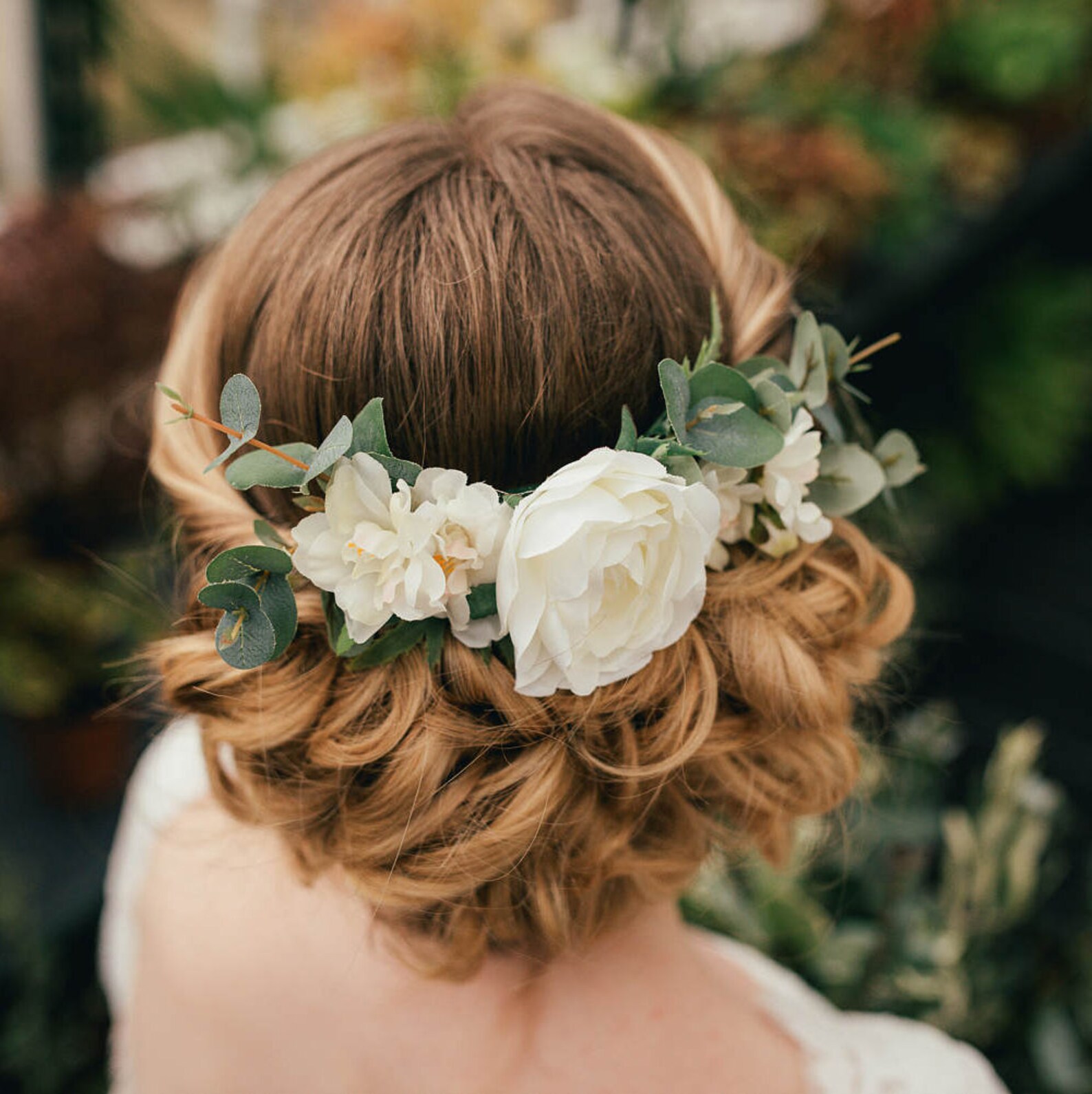 2. Прическа в виде цветочной короны — свадебная прическа и макияж от Пэм Ригли