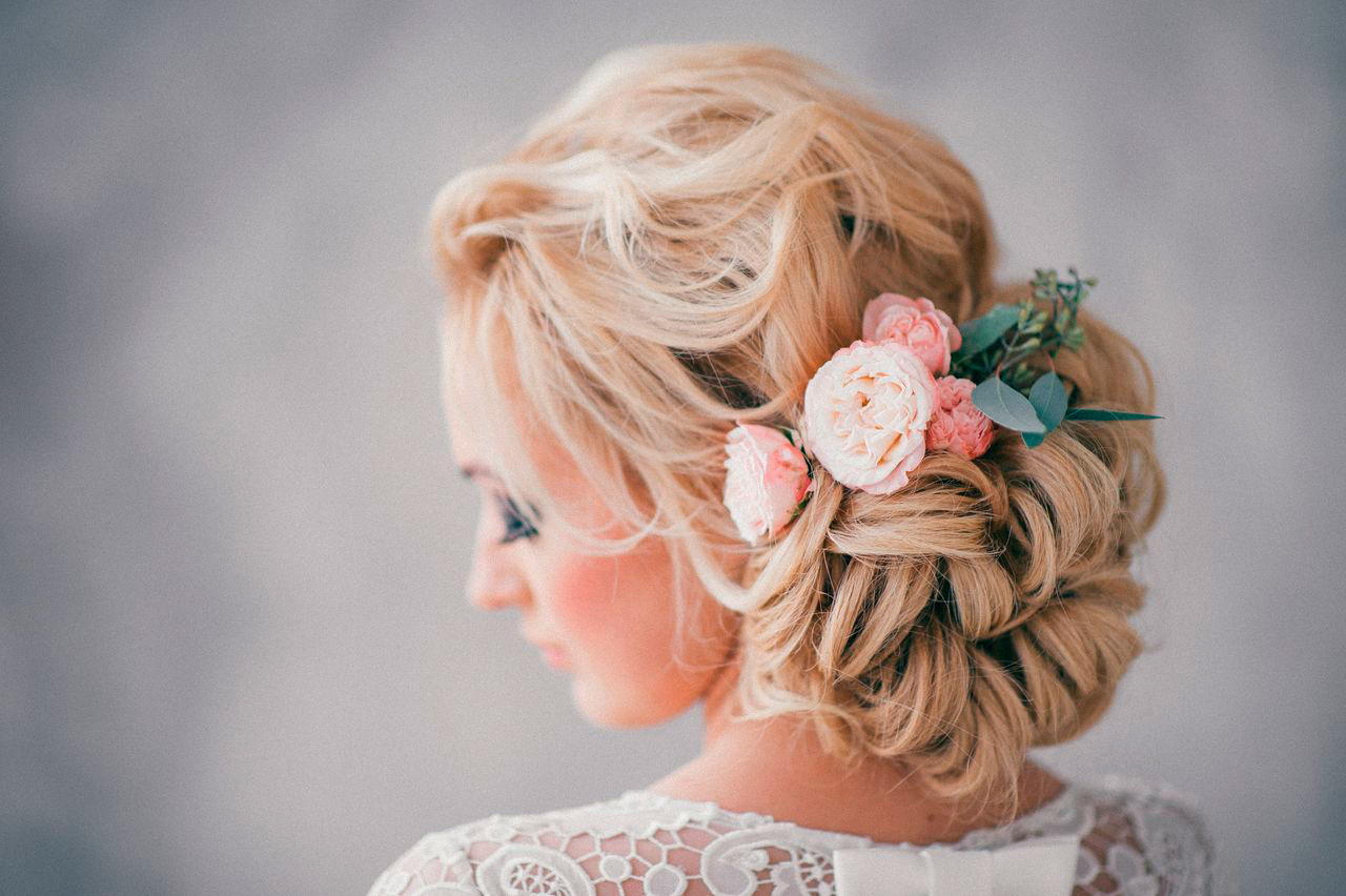 4. Пуховые свадебные прически с цветами — прическа и макияж Loxus