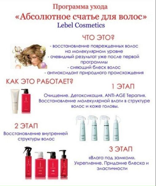 В нашем салоне у Вас есть возможность попробовать уникальную процедуру – «Абсолютное счастье для волос от LEBEL». Это великолепный комплекс косметических средств по восстановлению структуры волос любой сложности.