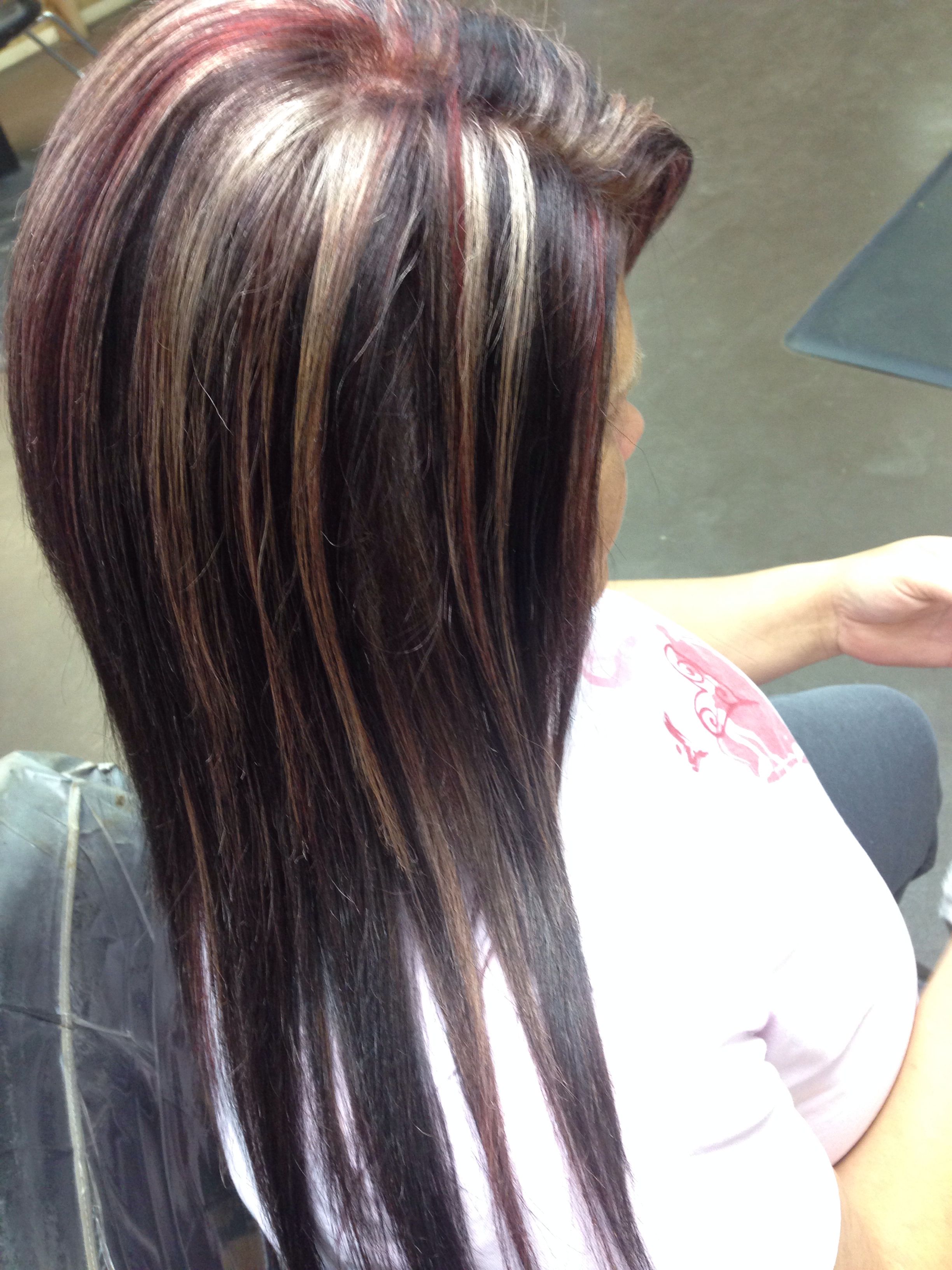 Наиболее часто контрастное окрашивание применяется на черных волосах представителями различных субкультур.