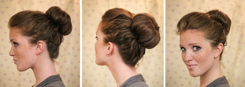 - Разнообразие. Бублик, расположенный в разных частях головы радикально меняет образ. Высокий пучок – вы продвинутая студентка, на затылке – элегантная бизнес – леди; низкий с неубранными прядями сделает из вас трогательную красавицу, боковой – озорную девчонку;