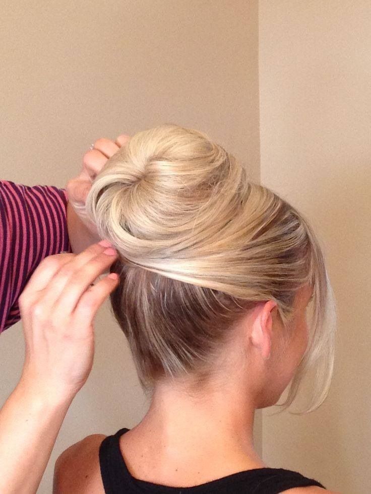 - Не имеет значения какой бублик вы используете, купленный в магазине или сделанный собственноручно, его обязательно следует хорошо маскировать прядками волос и закреплять шпильками.