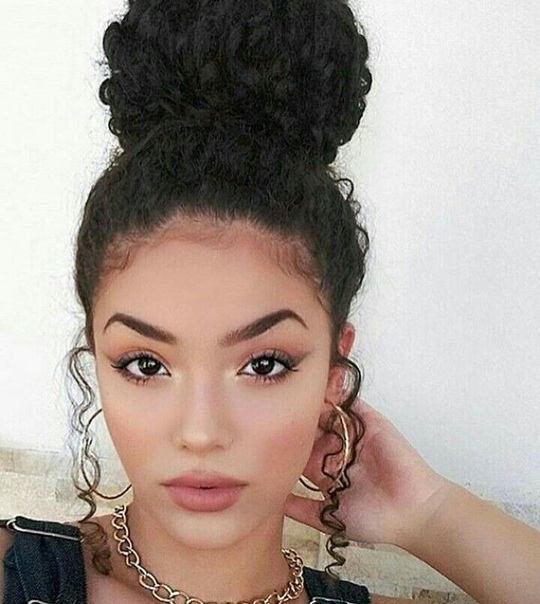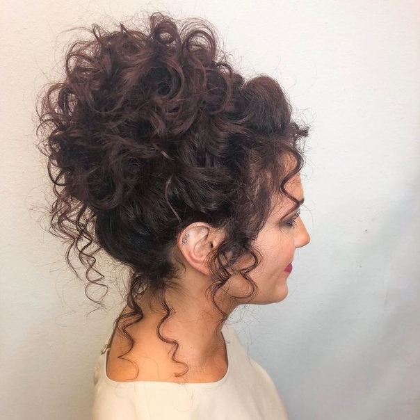 SourceНатуральные вьющиеся волосы — это очень весело экспериментировать.Несколько пучков ниспадают по бокам, чтобы украсить этот стиль мягкостью и непревзойденной элегантностью. Замысловатые изгибы прядей придают этому стилю изысканность и класс. Закрученные концы покрыты распылителем, чтобы придать им изысканную красоту и дополнительный блеск. Волосы собраны в мягкий пучок сзади.