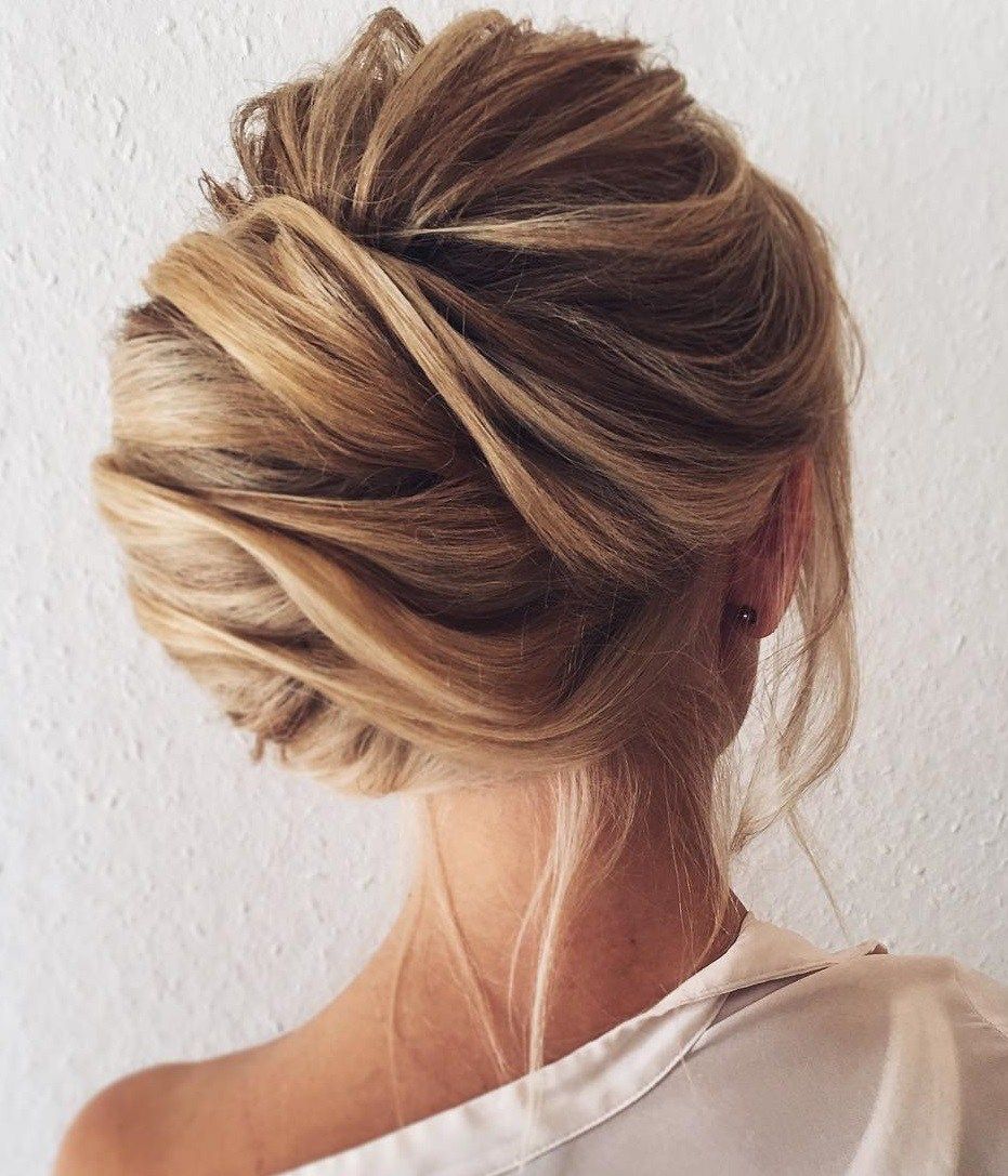 - Остальные локоны собирают по всей длине и закручивают в жгут в сторону закреплённых невидимок. Конец жгута выводится кверху.