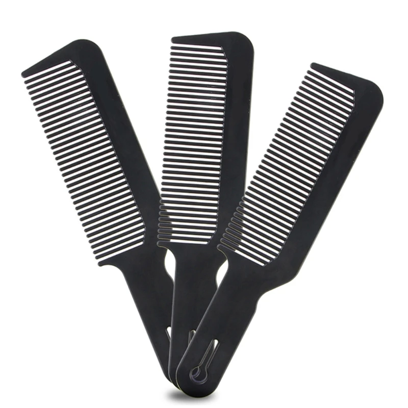 - Гребень. Это тонкая и плоская расческа, которая сзади часто имеет тонкую часть для пробора или разделения волос. Настоящий мастхев при стрижке, окраске или формировании начесов.
