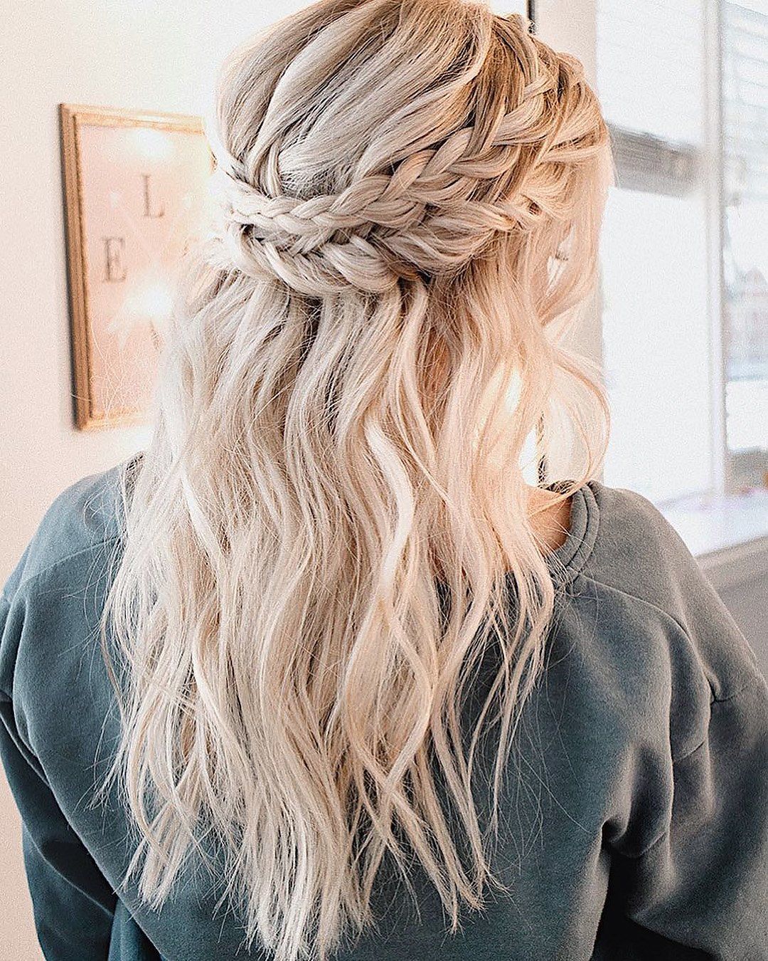 Для создания подобной укладки потребуется минимум усилий и времени, а взамен вы получите модную прическу в стиле бохо. Для этого отделите по локону за каждым ухом и сплетите два простых колоска. После этого оберните косички вокруг головы в виде ободка и закрепите их при помощи невидимок, спрятав концы за основной массой волос.