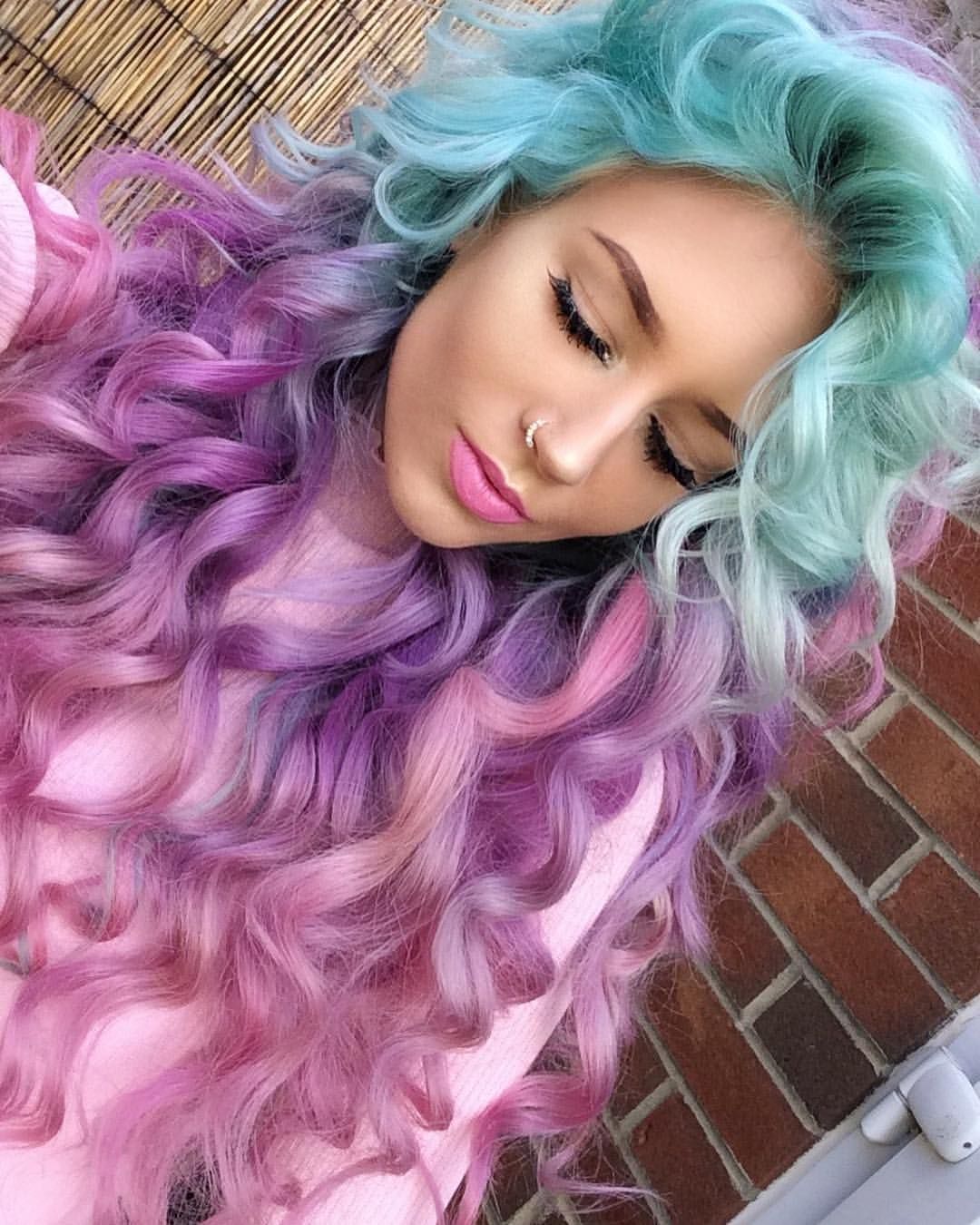 Посмотреть полный пост в InstagramБудь прокляты осень и зима, пожалуйста, попробуйте этот тренд пастельных оттенков волос. Принеси два-три оттенка пастельных тонов (например, синий, мятно-зеленый и сиреневый цвет волос, которые вы видите здесь) вашему колористу. Кстати, так как это тяжелая работа с отбеливателем, лучше не делать это своими руками.