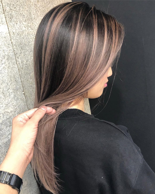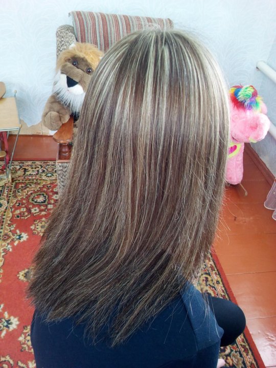 Она достигается применением янтарных оттенков, нанесенных на редкие прядки. Подходит для любой длины волос.