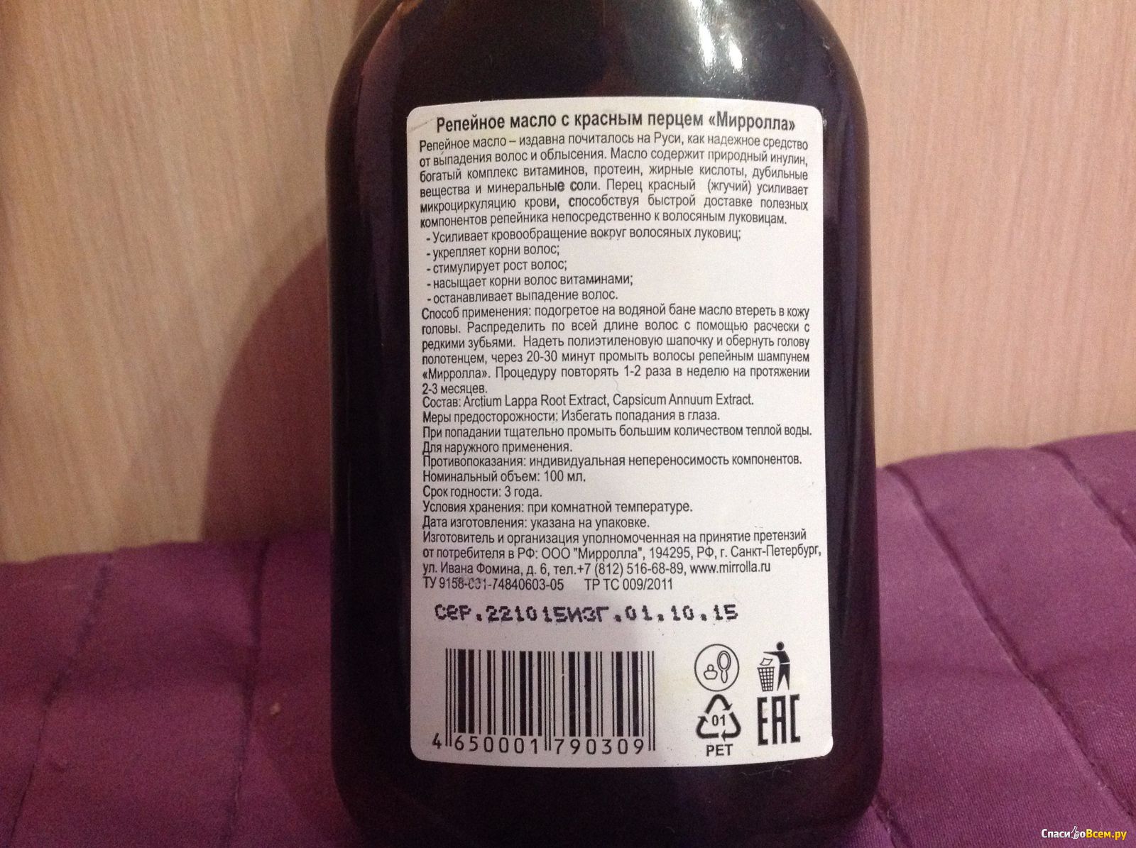 Как правило, репейное масло смыть нетрудно – если оно натуральное, поэтому при покупке средства надо быть очень внимательными, либо готовить состав самим. Если масло смывается с трудом, используйте шампунь несколько раз, а воду – более тёплую, но не горячую.