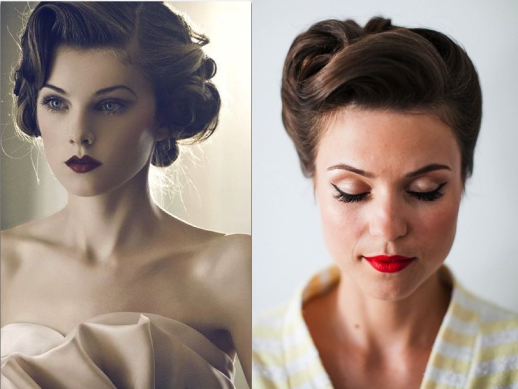 Делая ретро прически на короткие волосы, стоит поиграть с формами, направлениями локонов и углами среза волос. Челку лучше отрастить. В этом случае с ней можно придумать различные варианты укладки: волны, прямые зачесы к вискам.