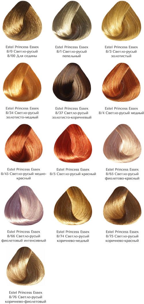 Краска Estel ESSEX также имеет широкую гамму оттенков русого цвета: в нее входят темные, золотистые, медные, коричнево-фиолетовые, красные, пепельные и другие тона.