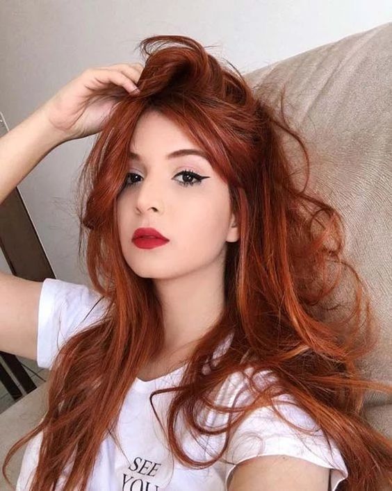 Длинные волнистые волосы идеально подходят для сладкого лета. Эти мокрые пляжные волны заставят вас выглядеть так, как будто вы только что были на берегу моря. И есть ли что-нибудь лучше этого? Этот рыжий оттенок волос отлично подходит тем девушкам с карими глазами, которые не любят яркие краски на волосах.