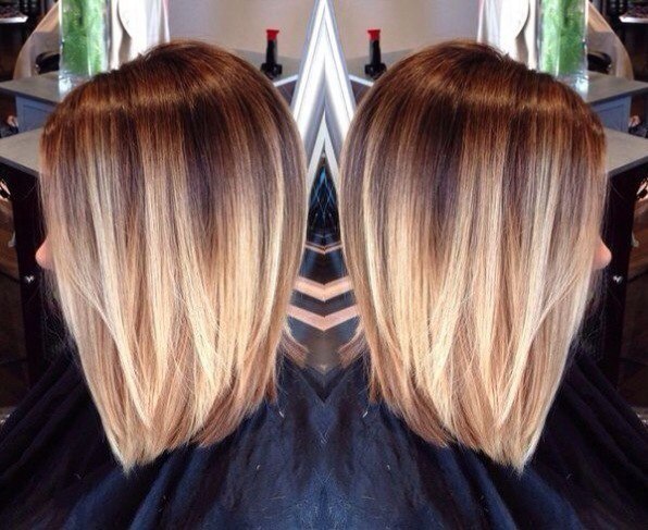 - Окрашивание омбре на средние волосы.
