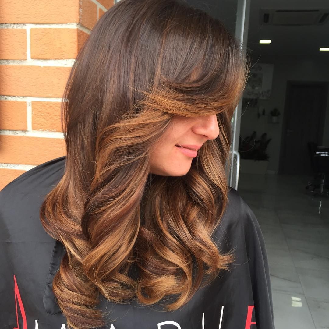 Говоря о каштановых волосах, нельзя не упомянуть модный в этом году оттенок — молочный шоколад. Если у вас натуральный оттенок каштановых волос, обязательно попробуйте шатуш в паре с карамельными тонами! Они в тренде!