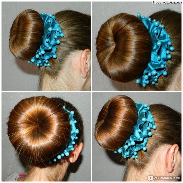 - Круглый (пончик или бублик) – служит для создания гульки (шишки), высокого или низкого классического пучка. Выбирая валик необходимо помнить, что чем больше аксессуар по высоте и в диаметре, тем выше и шире получается шишка из волос.