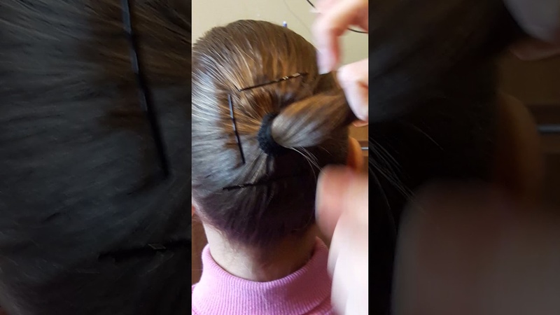 Гимнасты обычно используют сочетание шпилек, резинок и резинок для волос, чтобы удерживать волосы на месте.![]()