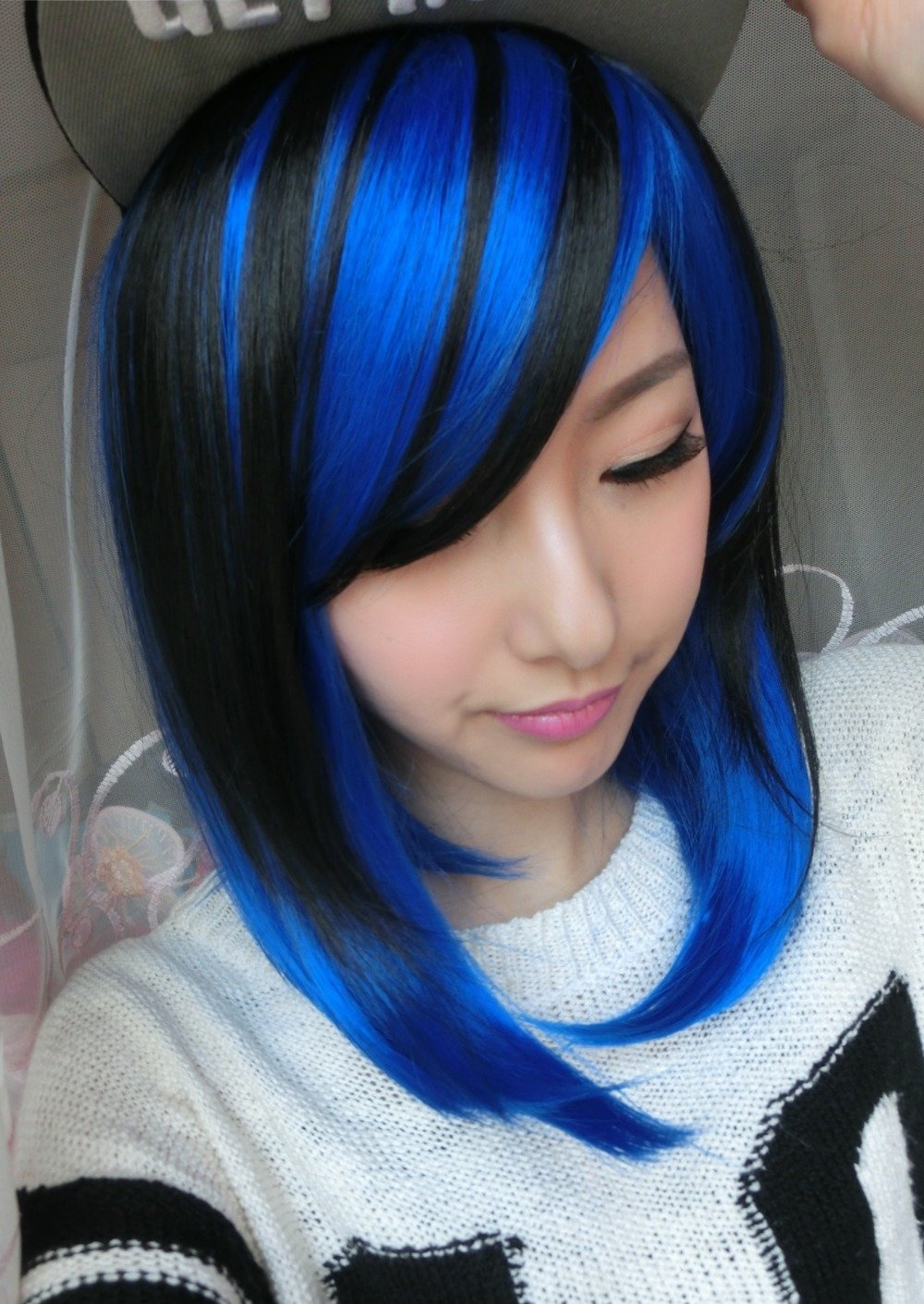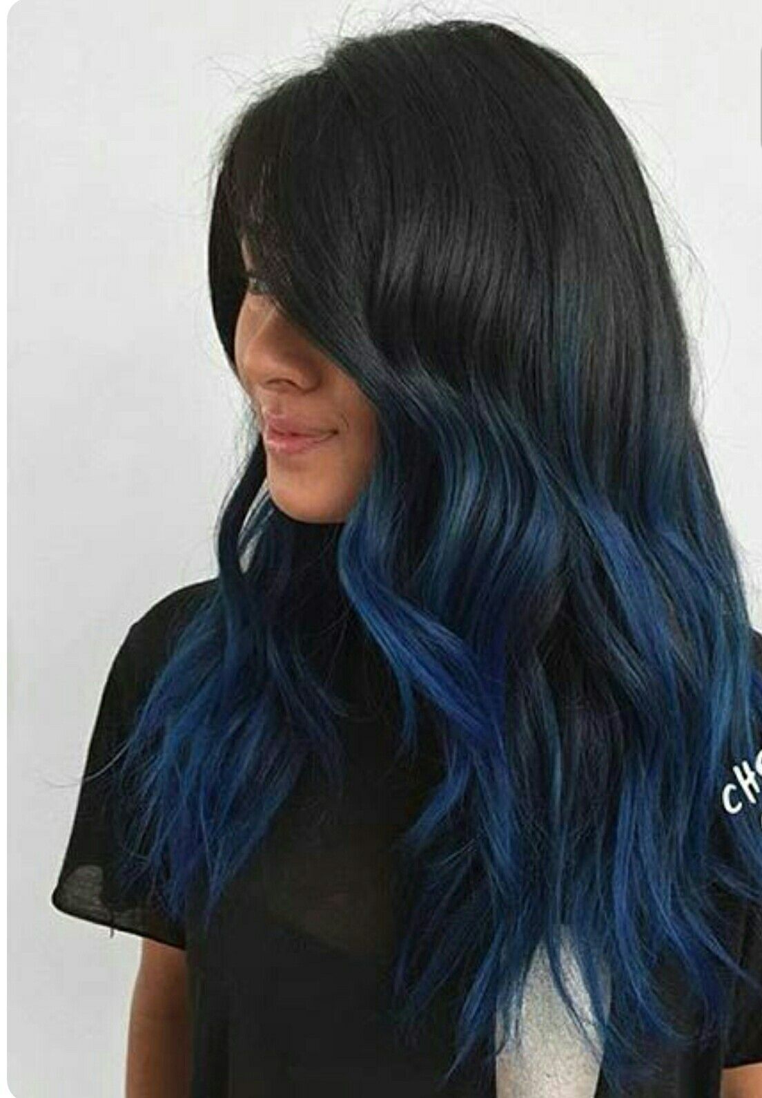Синий цвет волос всегда может добавить изюминку к основному цвету. Подходя к основному черному цвету волос от корней до середины длины, голубой цвет наносится только на кончики волос. Комбинация лучше всего подходит для гладких волос, которые выделяют цветовые оттенки.