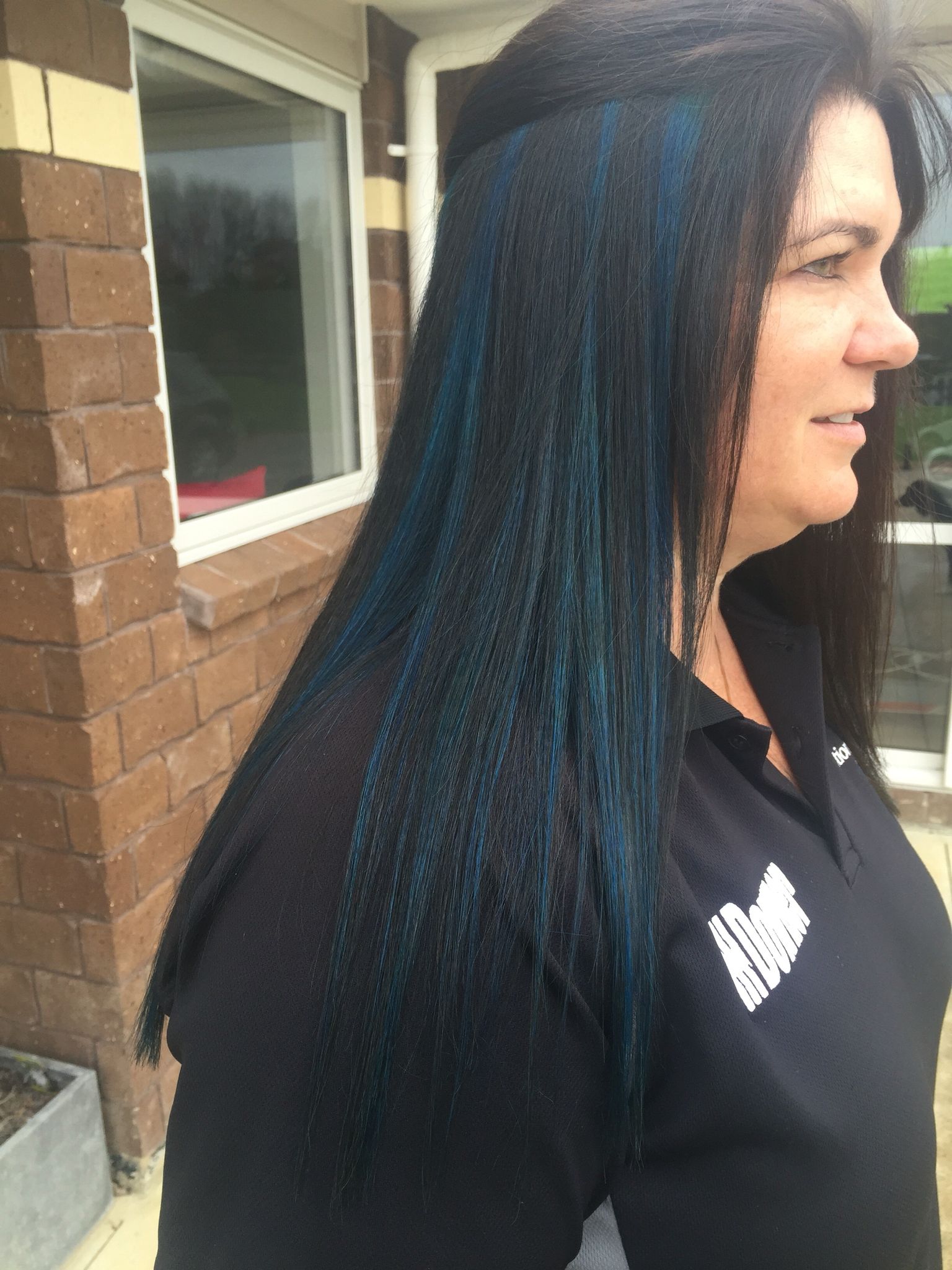 Создавая нужный контраст, они делают черные волосы с синими прядями центром притяжения взглядов.