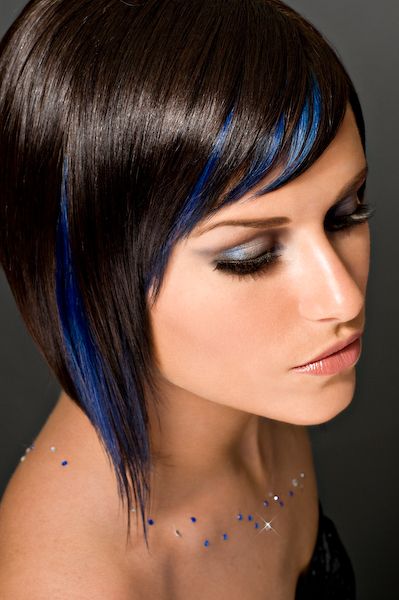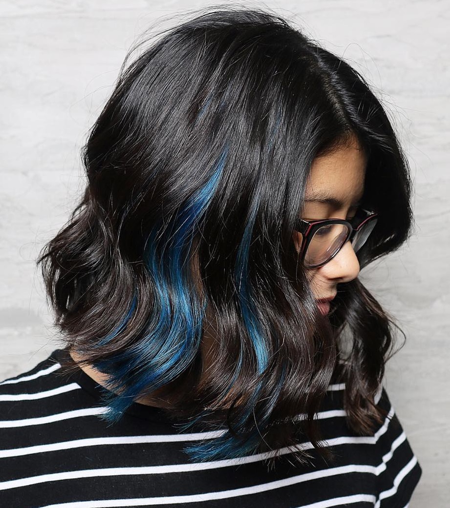 Какую укладку делать темноволосым девушкам с синими прядями?