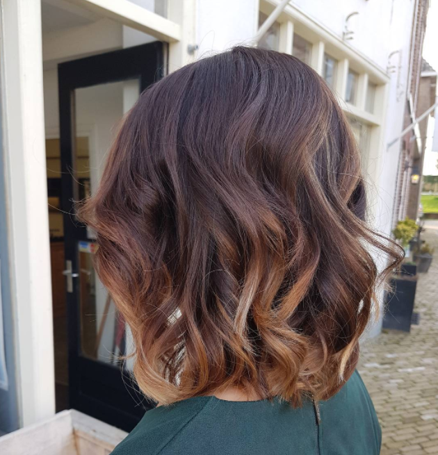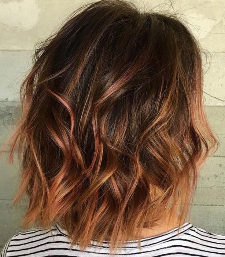 Переходы начинаются с середины длины волос, что позволяет оставить натуральный цвет в оригинале, добавляя нотки желаемого оттенка.