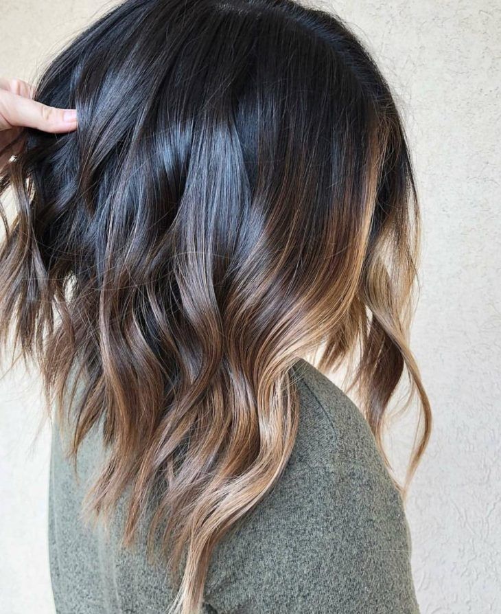 Разбавьте однотонный темный цвет светлыми бликами, которые будут переливаться на солнце и добавят прическе объема. Шатуш – окрашивание, которое не первый год остается в тренде, поэтому смело окрашивайте пряди этим способом.
