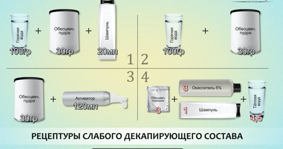Рецепт смывки — супра 1ч + оксид 2ч + вода 1ч + шампунь 1ч
