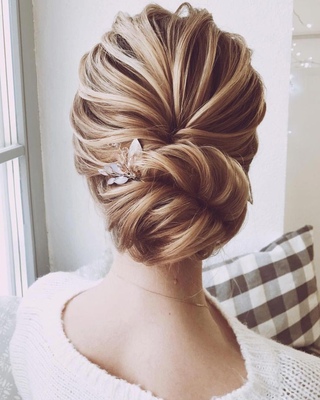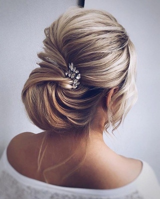 Еще одна шикарная и элегантная прическа также идеально подходит для ярких невест и модных выпускниц. Выбирая ювелирные изделия для прически, воспользуйтесь своим «внутренним стилистом» и правильно подберите все детали для своего образа.