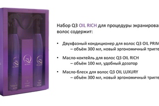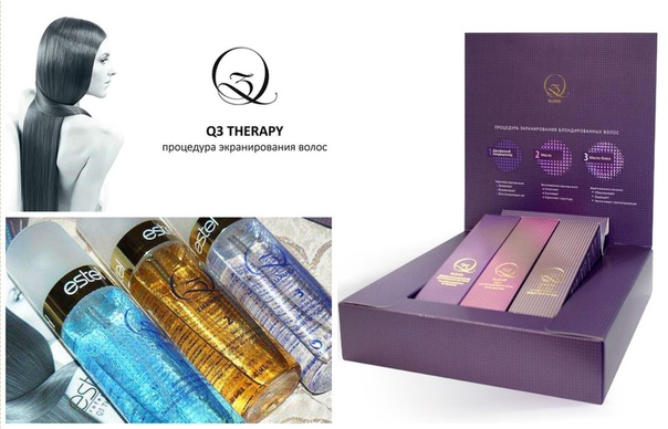 Линейка «Q3 Therapy Estel» содержит средства для экранирования, которые можно использовать для локонов разной длины. Можно выбрать необходимый набор для проведения этой процедуры как темноволосым красавицам, так и блондинкам. Девушкам с блондированными волосами можно даже выбрать набор для цветного экранирования, в котором содержатся компоненты, способствующие удалению желтизны с окрашенных ранее локонов.
