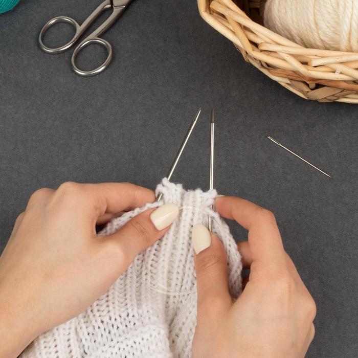 Круговые иглы, пожалуй, более универсальный стиль игл, которые можно использовать для проектов большинства размеров. Круговые иглы состоят из двух коротких заостренных концов, соединенных шнуром разной длины, обычно сделанным из пластмассы.Круговые иглы обычно бывают длиной 16 дюймов, 20 дюймов, 24 дюйма и 32 дюйма. Чаще всего они используются для больших проектов, таких как бесшовные свитера, большие одеяла или шарфы, которые связаны горизонтально, потому что шнур предлагает больше места для стежков. Еще одним преимуществом круговых спиц является то, что вес изделия распределяется по шнуру и может лежать у вас на коленях во время вязания, облегчая вязание на ваших запястьях. Круговые иглы также можно использовать для большинства небольших проектов; что делает их отличным выбором игл.
