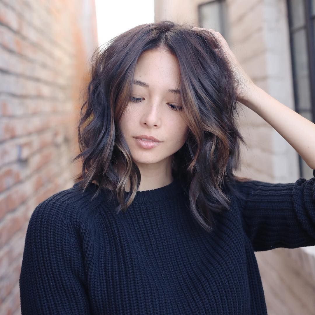 Помимо полностью прямых волос, наиболее очевидный вариант укладки волос до плеч — это зависание мягких, беспорядочных волн.