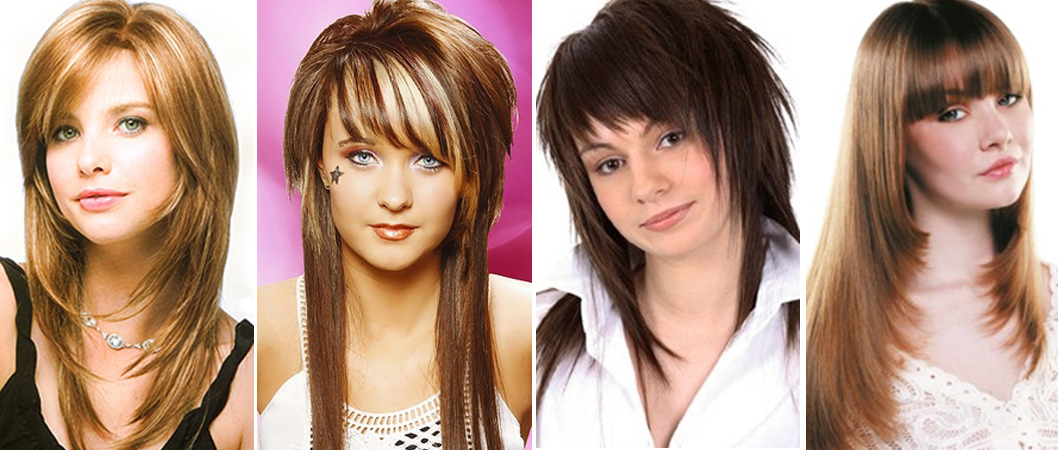 Стрижки Каскад на длинные волосы с челкой и короткой макушкой