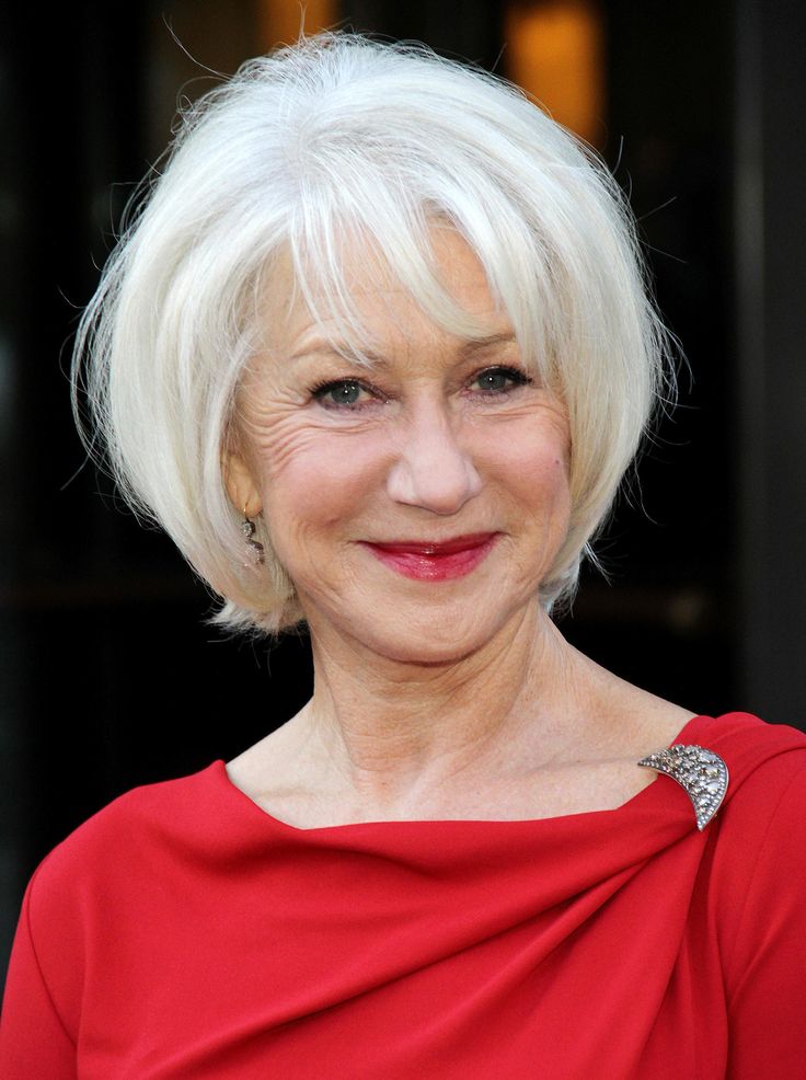 Для пожилых дам есть два выхода. Первый из них заключается в том, чтобы недостаток превратить в преимущество. Словно серебряные волосы выглядят очаровательно, придавая образу аристократичность и утонченность.