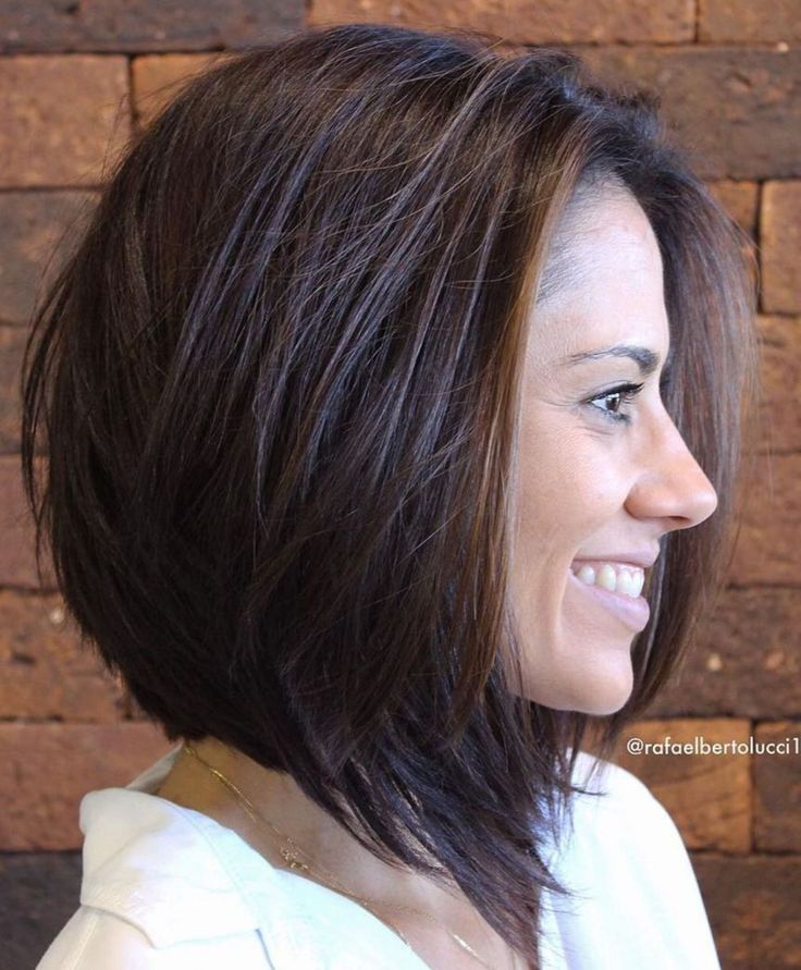 С другой стороны, у нас есть гладкий прямой боб, который сидит прямо над плечами. Вес убирается изнутри, так что вы видите эту привлекательную форму вместо страшного треугольника.