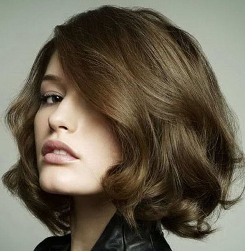 Подойдет среднее каре с закругленными концами внутрь. Впереди можно оставлять длинные кончики. Это придаст жесткости и не будет утяжелять.