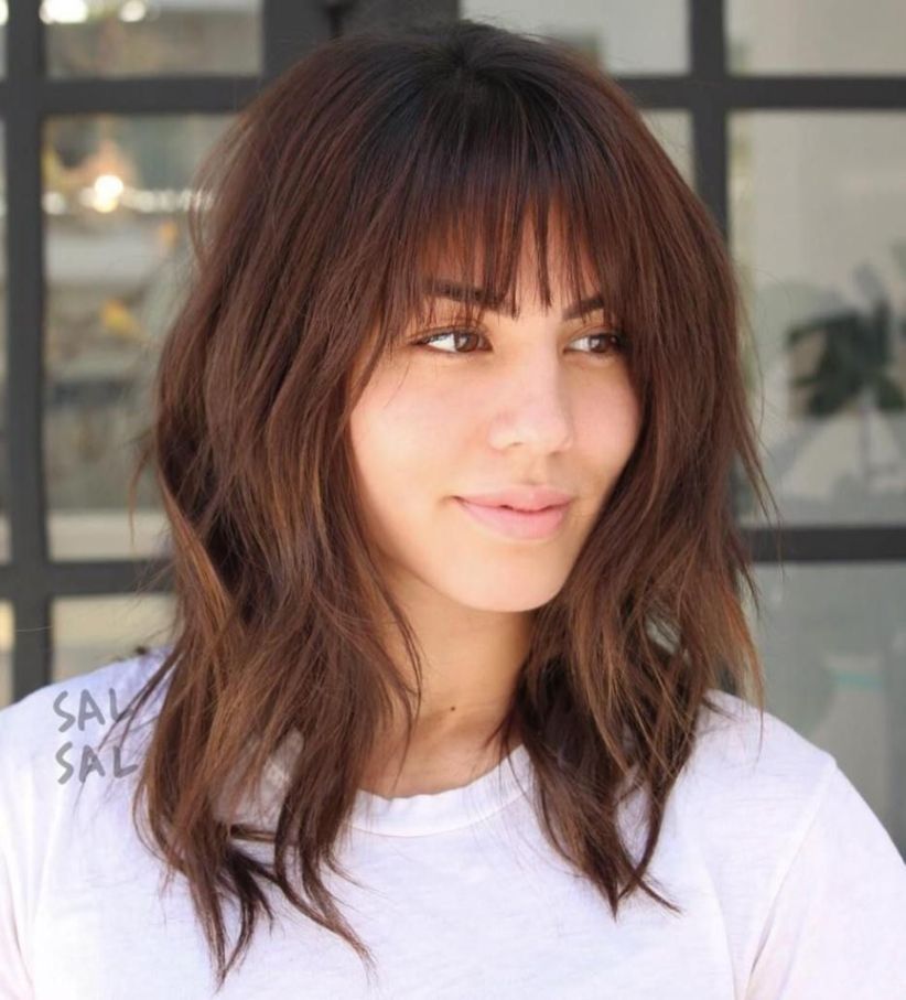 Опять же, стрижка средней длины = волшебство на густых волосах. Густая челка (и игривые блики) добавляют дополнительный блеск.