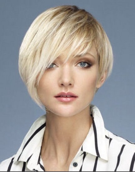 Короткая косая прическа со слоями украсит тонкие волосы.