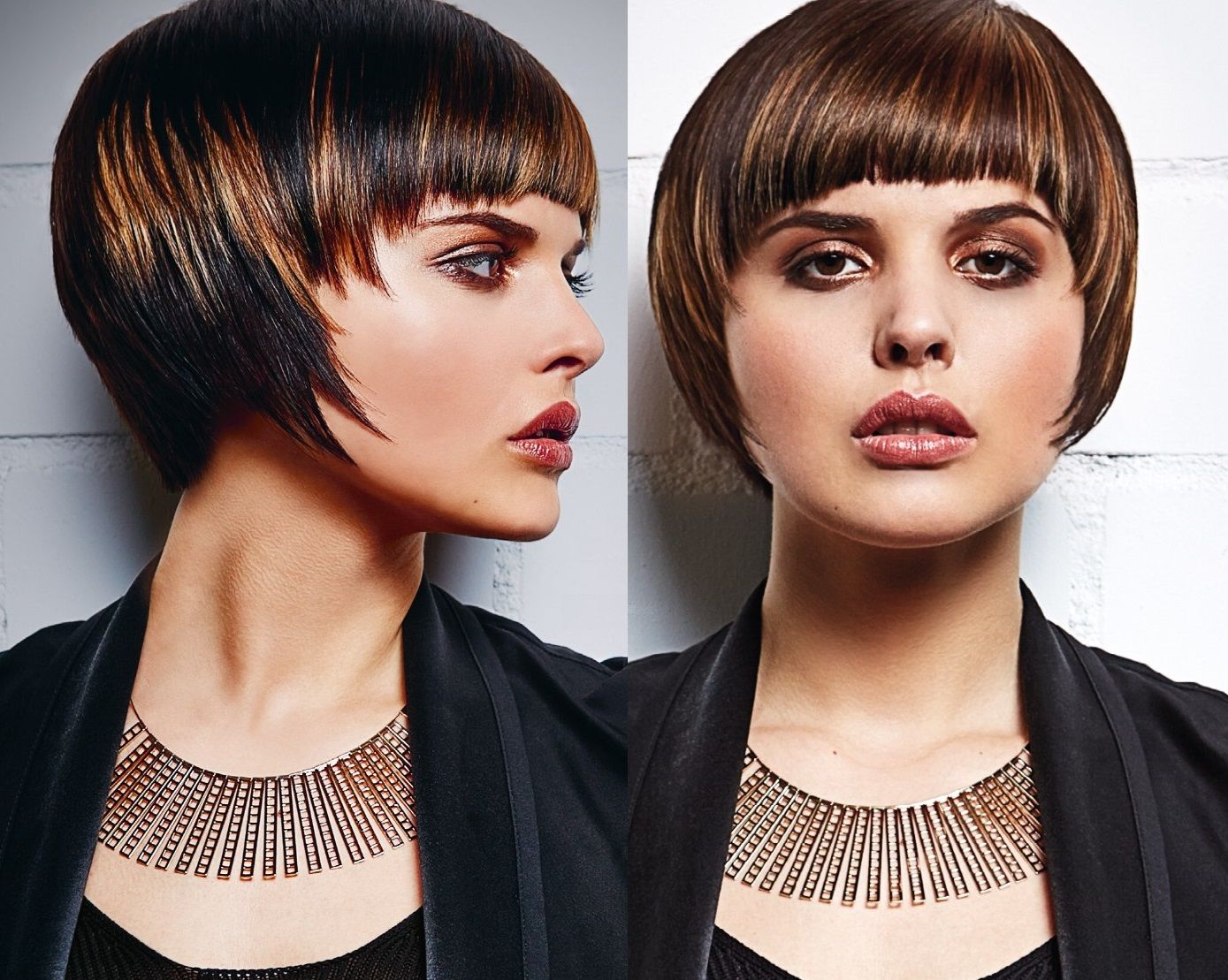 Укладка на короткие пряди подразумевает четкое обрамление лица и окончание контура на уровне мочки уха. Для дополнительной объемности оформляют ровной лобной зоной. В зависимости от типа овала лица может быть короткой либо ультрадлинной. Короткий вариант бесспорно наиболее эффектный. Но капризный, требовательный в уходе.