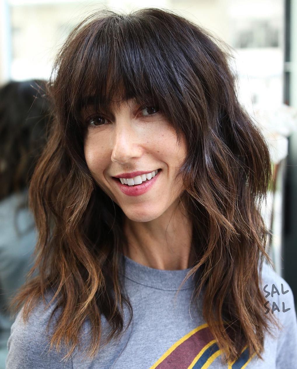 Стрижка слоями позволяет придать ей универсальную и современную форму. Тем не менее, звезды этой лохматой стрижки — тонкие челки. Они выглядят совершенно великолепно.