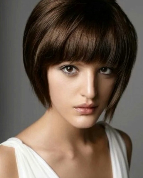 Несмотря на то что длина волос очень короткая, прическа считается очень женственной. Она смягчает линии подбородка и открывает тонкую изящную шею. «Паж» закрывает широкий лоб, скругляет овал лица, именно это нужно девушке с удлиненной формой.