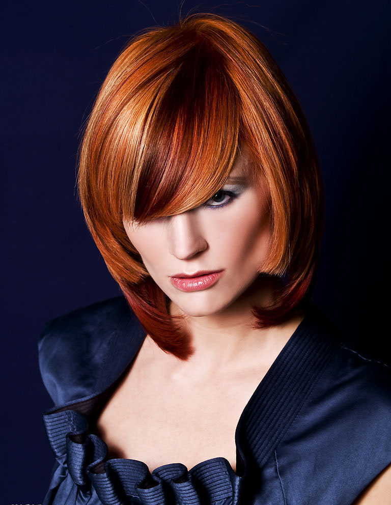 Модная покраска для рыжих волос 2021-2022 на средние волосы