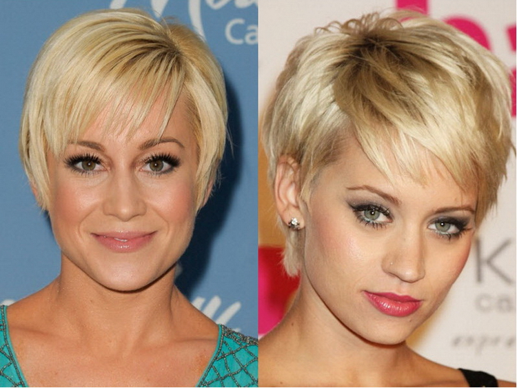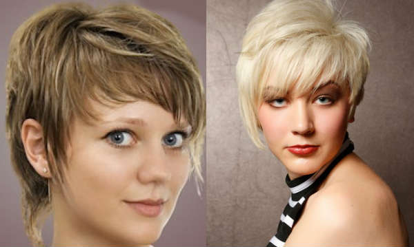 - Круглое лицо можно сузить и визуально вытянуть с помощью косой рваной челки. В идеале выбирайте челку средней длины, так как короткий вариант может, наоборот, придать щекам припухлости, как и очень длинная челка.