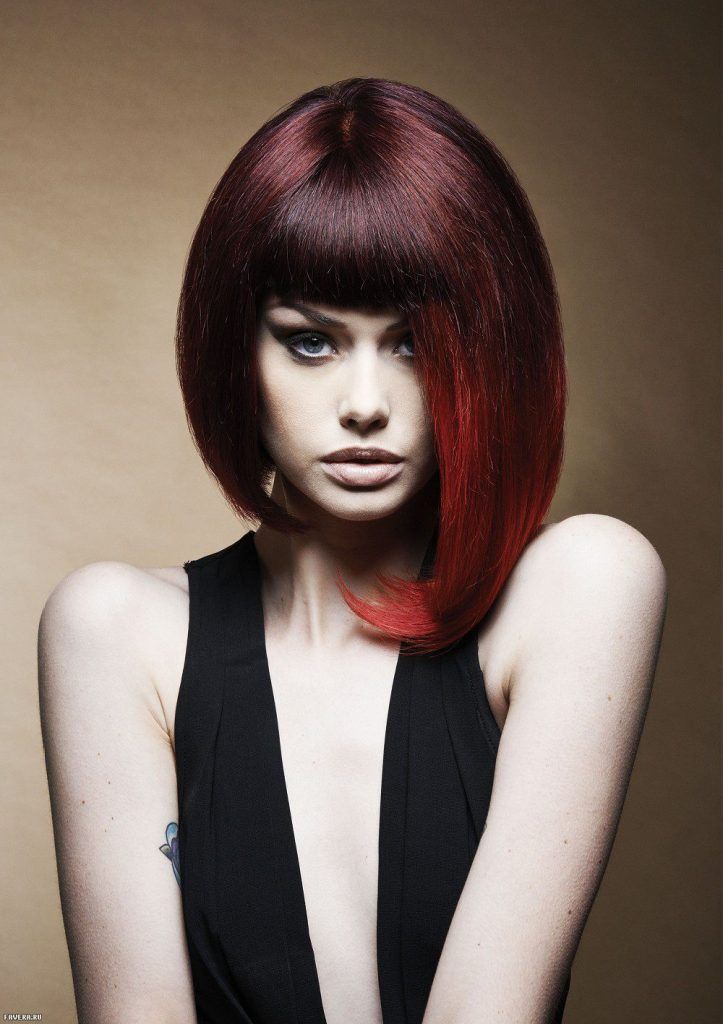 Короткая челка. Довольно смелое решение для девушек, короткая челка хорошо сочетается с классическим каре.